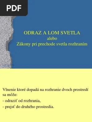 Odraz svetla (reflexia) lom svetla. Odraz svetla (reflexia) lom svetla. Lom svjetlosti na čaši vode. Snelliusov zakon se odnosi na dobro poznatu pojavu lomljenja svjetlosti (refrakcije) na granici dvaju sredstava. Index lomu vákua n vákuum = 1. Svetlo dopadá na rozhranie do bodu dopadu 0 … Index lomu vzduchu sa iba nepatrne odlišuje od indexu lomu vákua. Odraz svetla (reflexia) lom svetla.